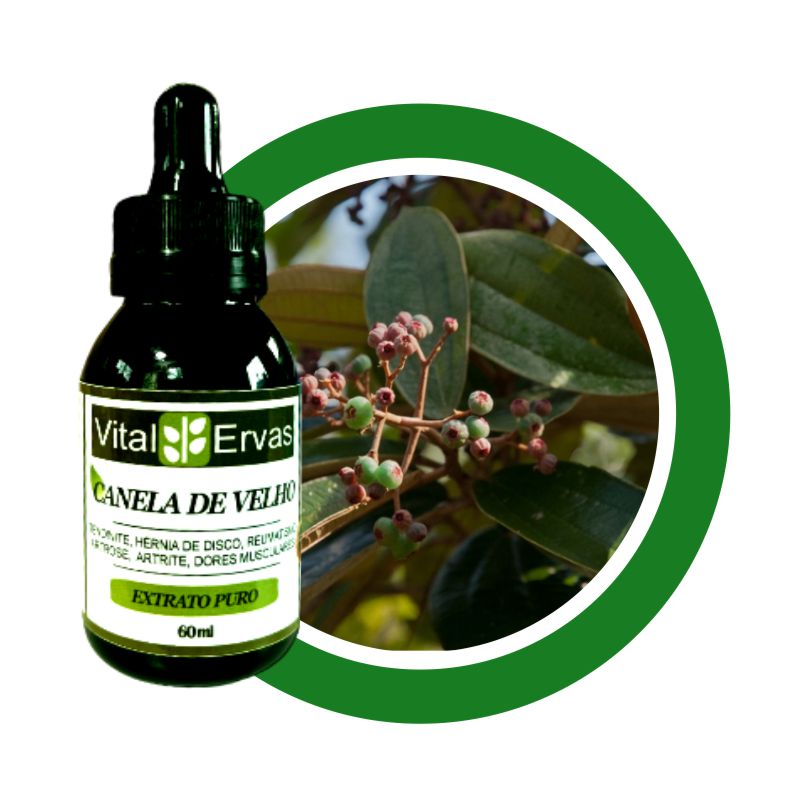 O Extrato da Canela de Velho possui nutrientes que podem auxiliar em tratamentos terapêuticos como artrose, artrite reumatoide, fibromialgia, dores e inflamação das articulações, dores na coluna, bursite, redução de radicais livres, purificação do sangue, reumatismo, tendinite e muito mais.