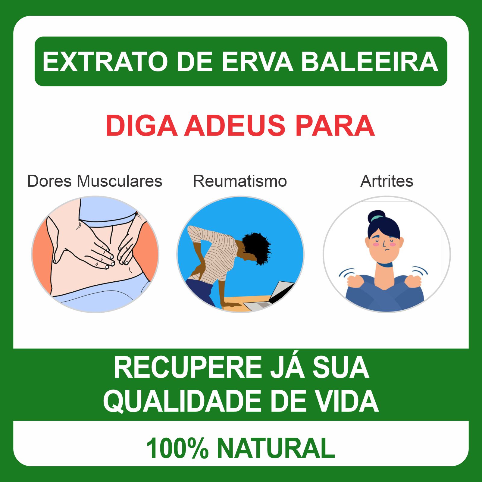 Diga adeus para as Dores causadas por Reumatismo, Artrites, Artroses e Dores Musculares em Geral. Com o Extrato de Erva Baleeira suas dores desaparecem e você recupera sua qualidade de vida.