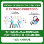 O extrato composto de Própolis Verde com Cúrcuma apresenta um leque vasto de benefícios para a saúde, que vão desde ações anti-inflamatórias até propriedades anticancerígenas. Tem ação eficaz no combate de infecções bacterianas e virais, e é útil no tratamento de feridas e queimaduras. Em resumo com a combinação destes componentes, obtemos um excelente anti-inflamatório, anti-oxidante, anti-bacteriano, anti-fungico e anti-viral, além de estimular e fortalecer todo sistema imunológico.